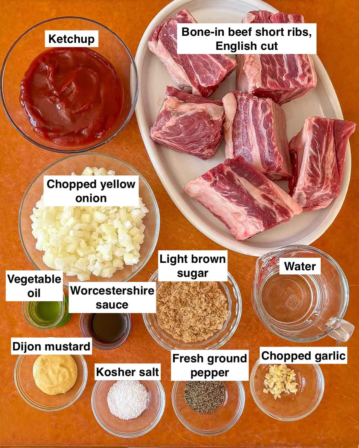 🥣 Main Ingredients: English cut bone-in beef short ribs, onion, ketchup, mustard, garlic, brown sugar, Worcestershire sauce